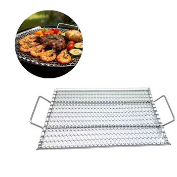 Bandeja de parrilla de malla de alambre antiadherente rectangular, herramientas para exteriores para barbacoa, parrilla para barbacoa con dos asas